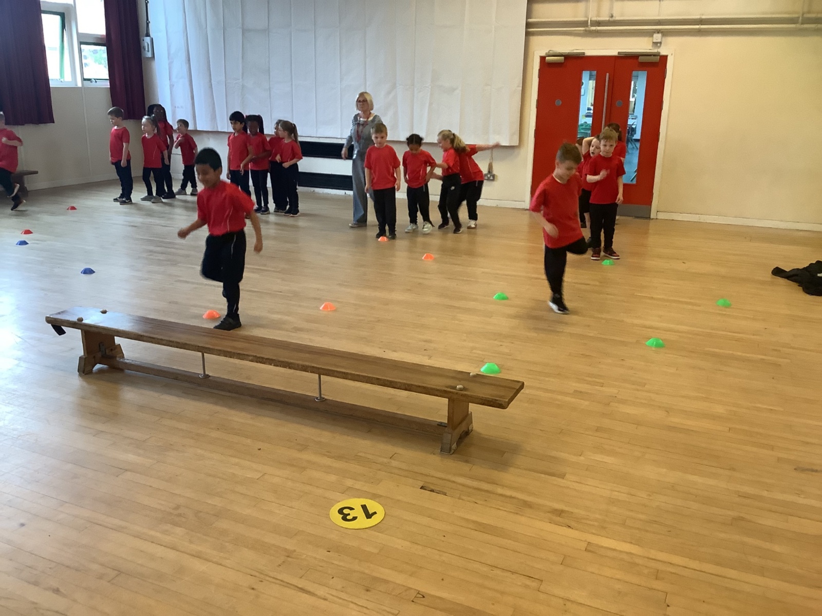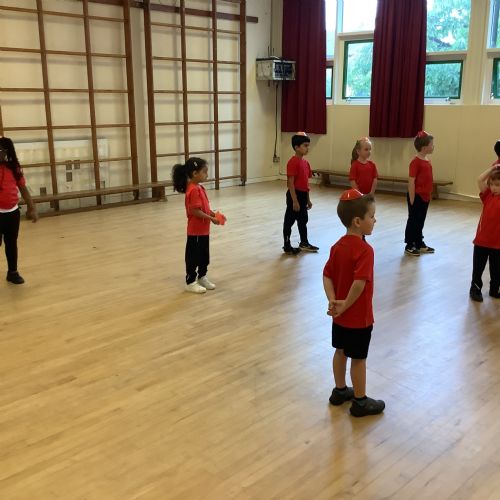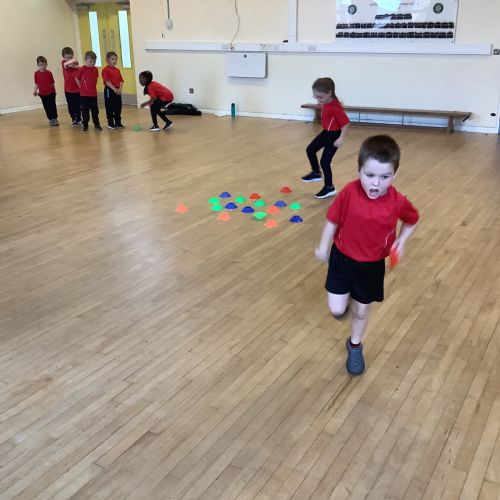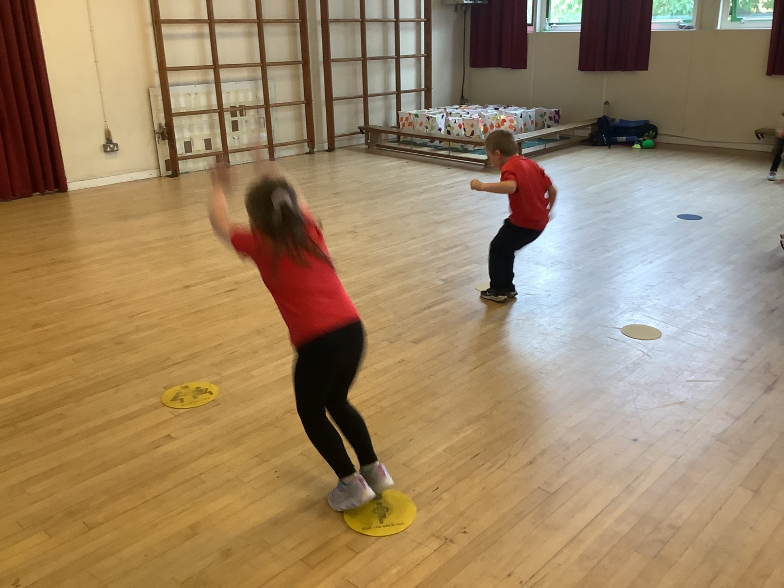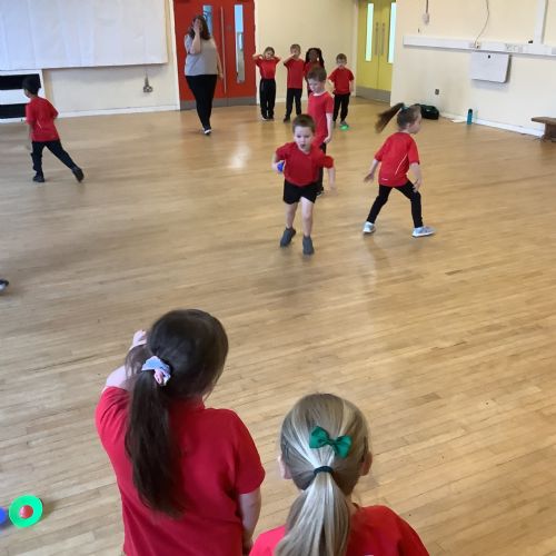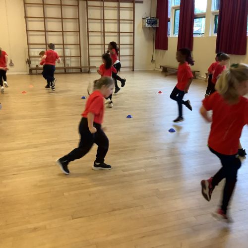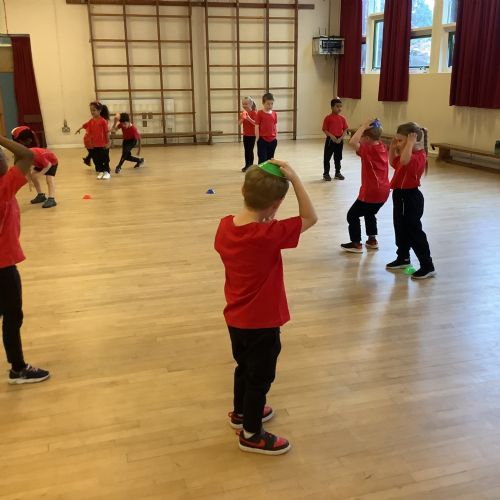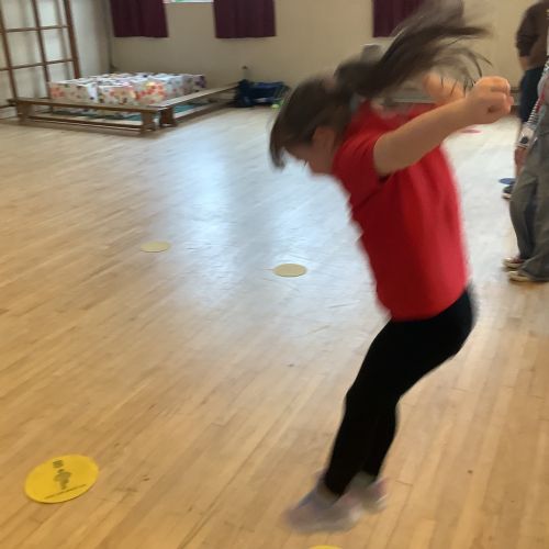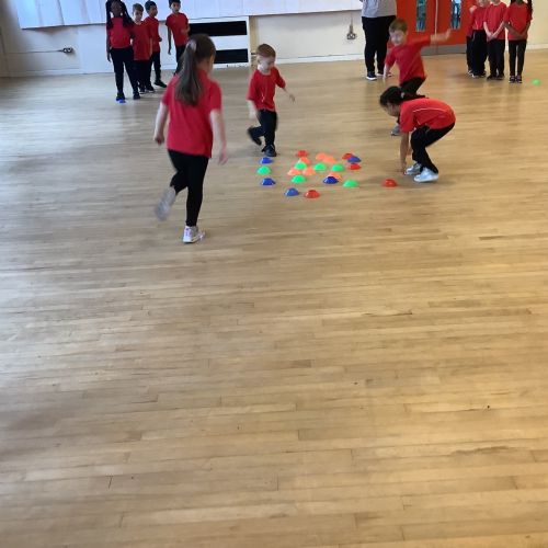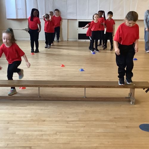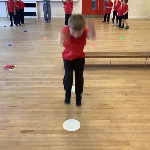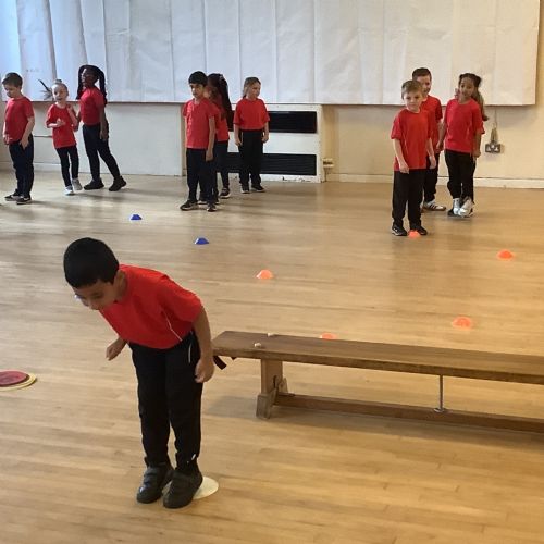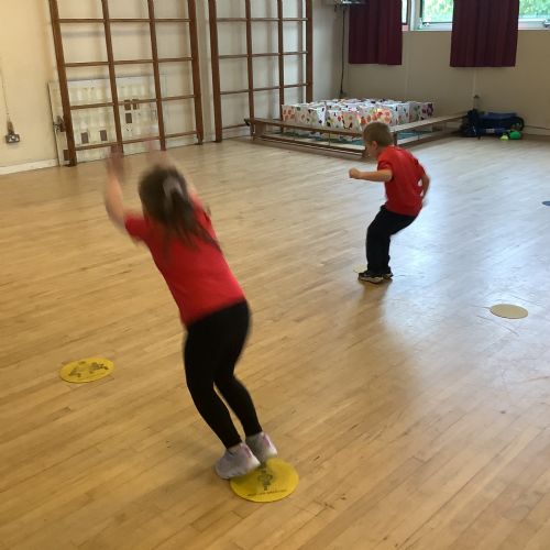 We are learning how to balance, hop, jump and play games.