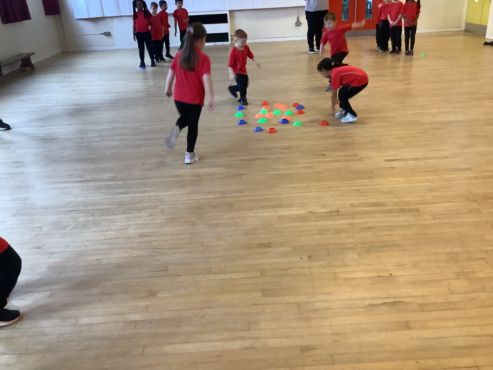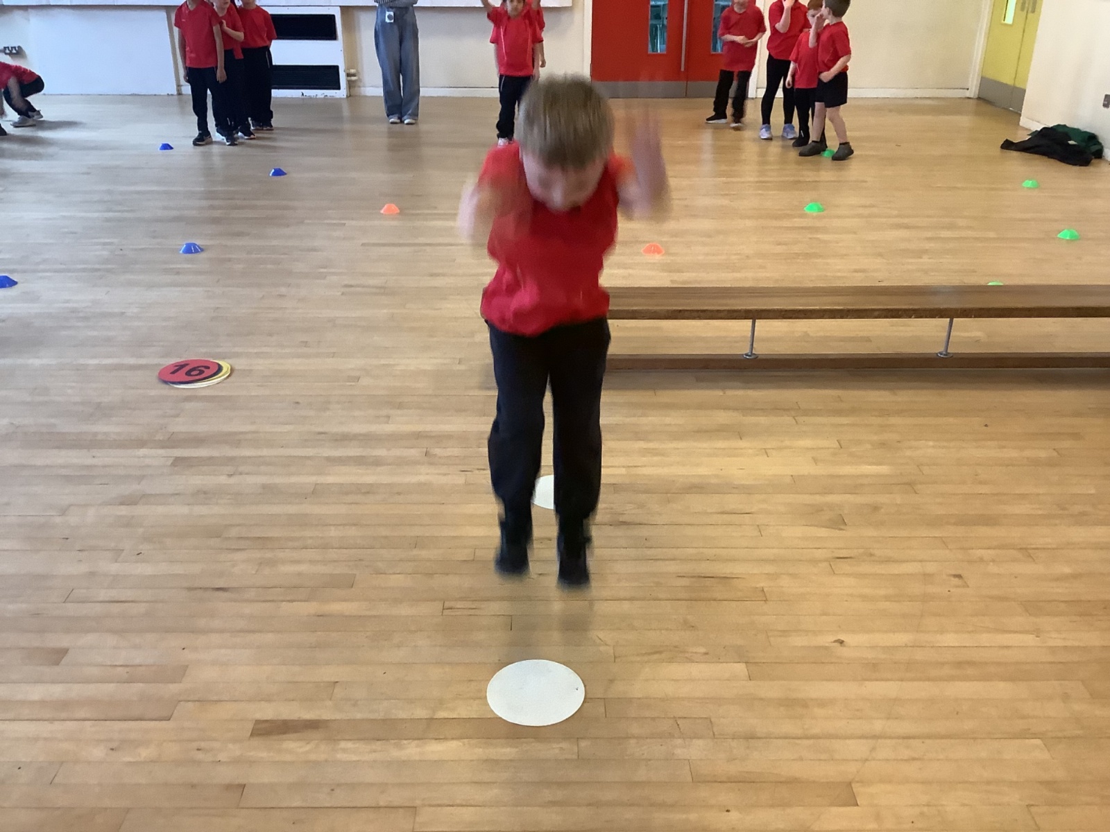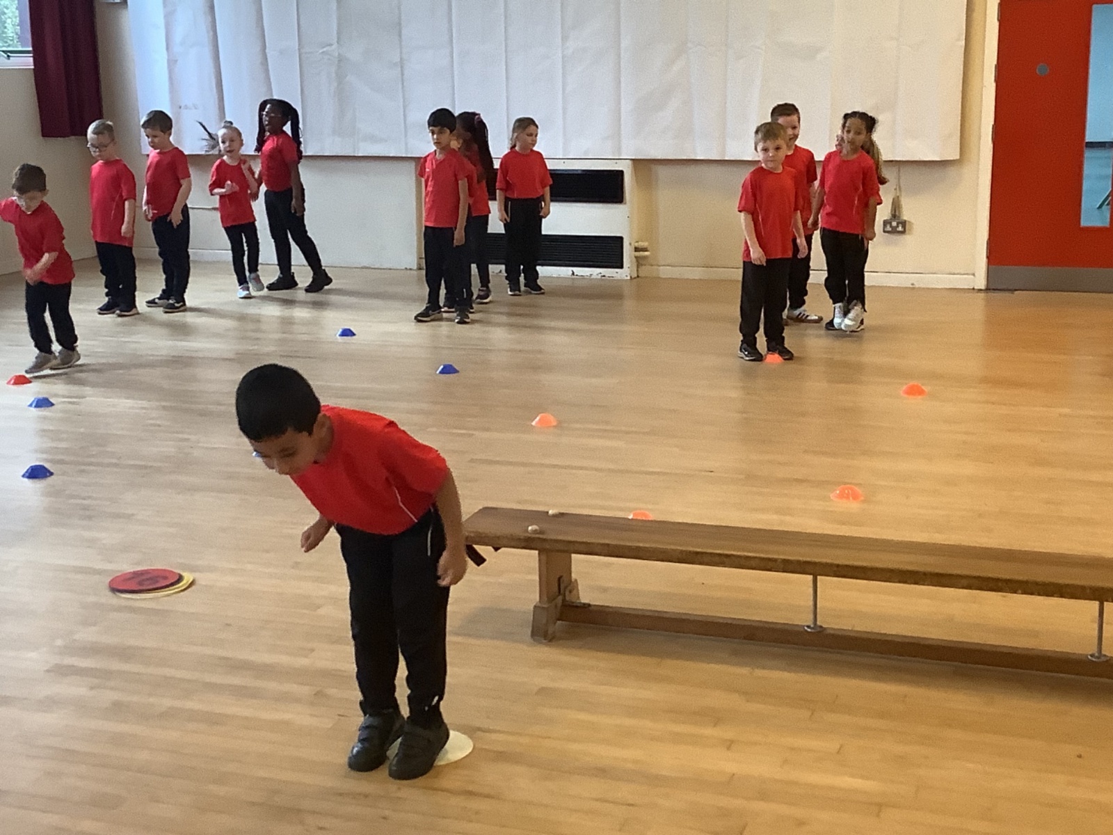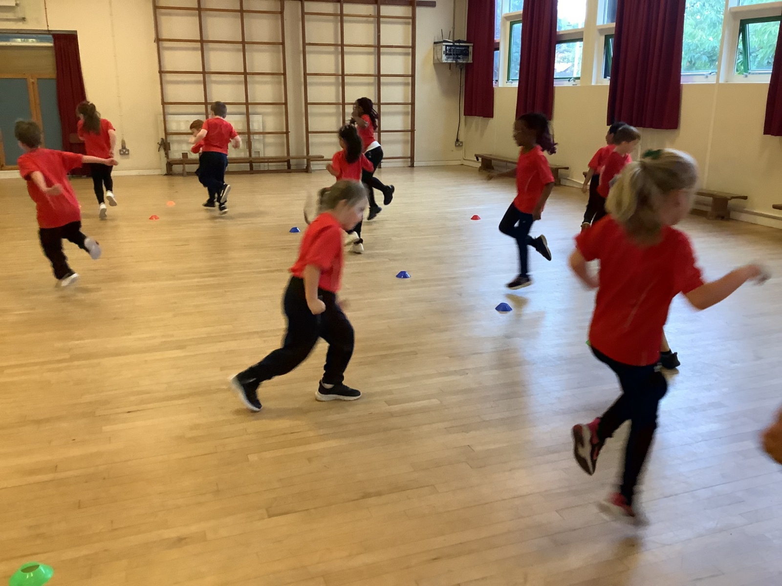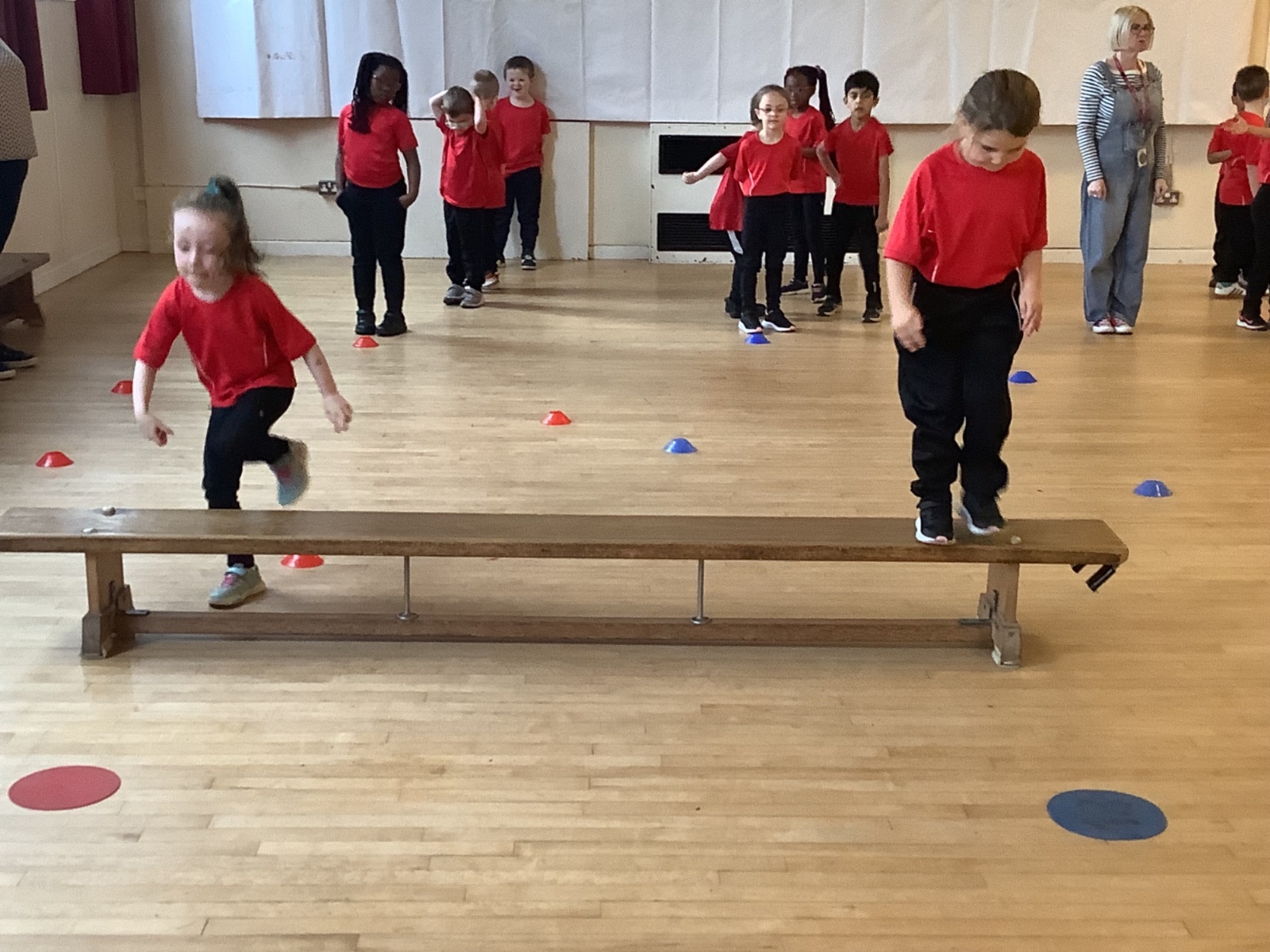 We are learning how to balance, hop, jump and play games.