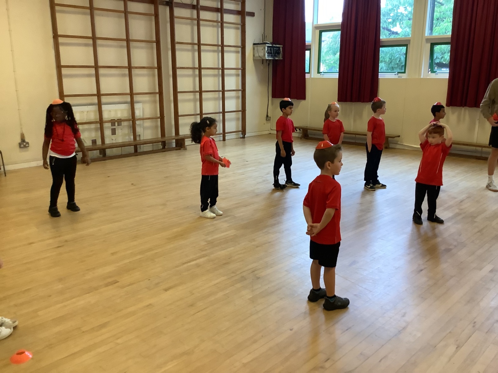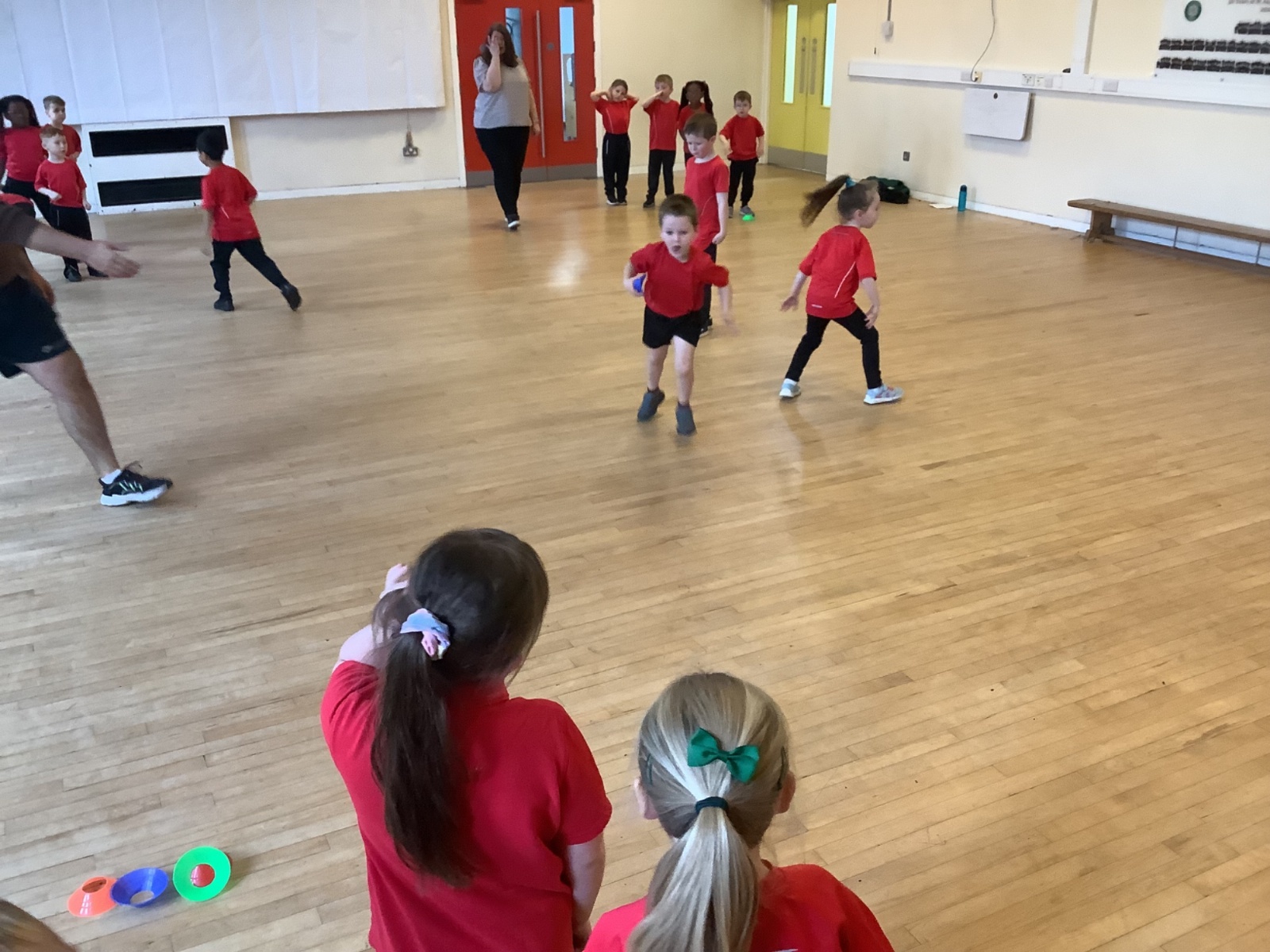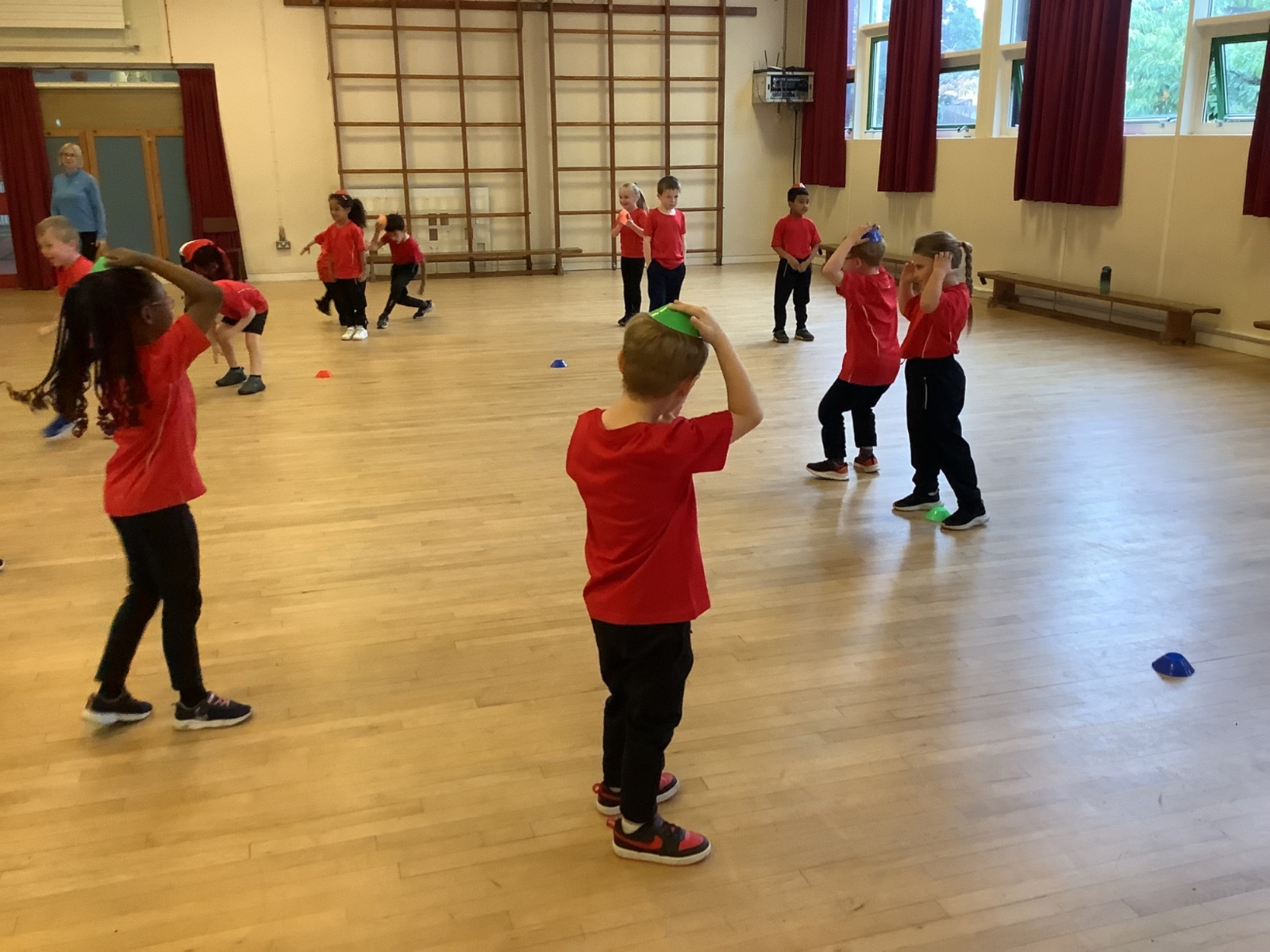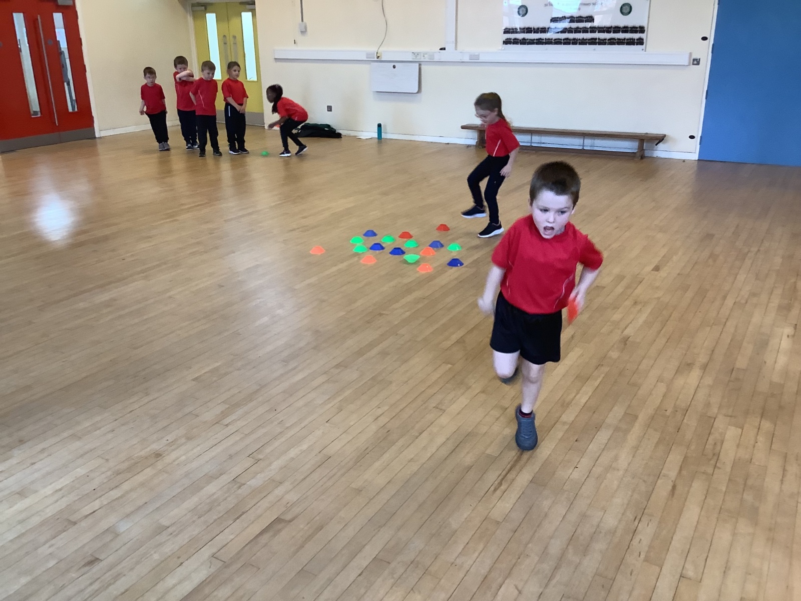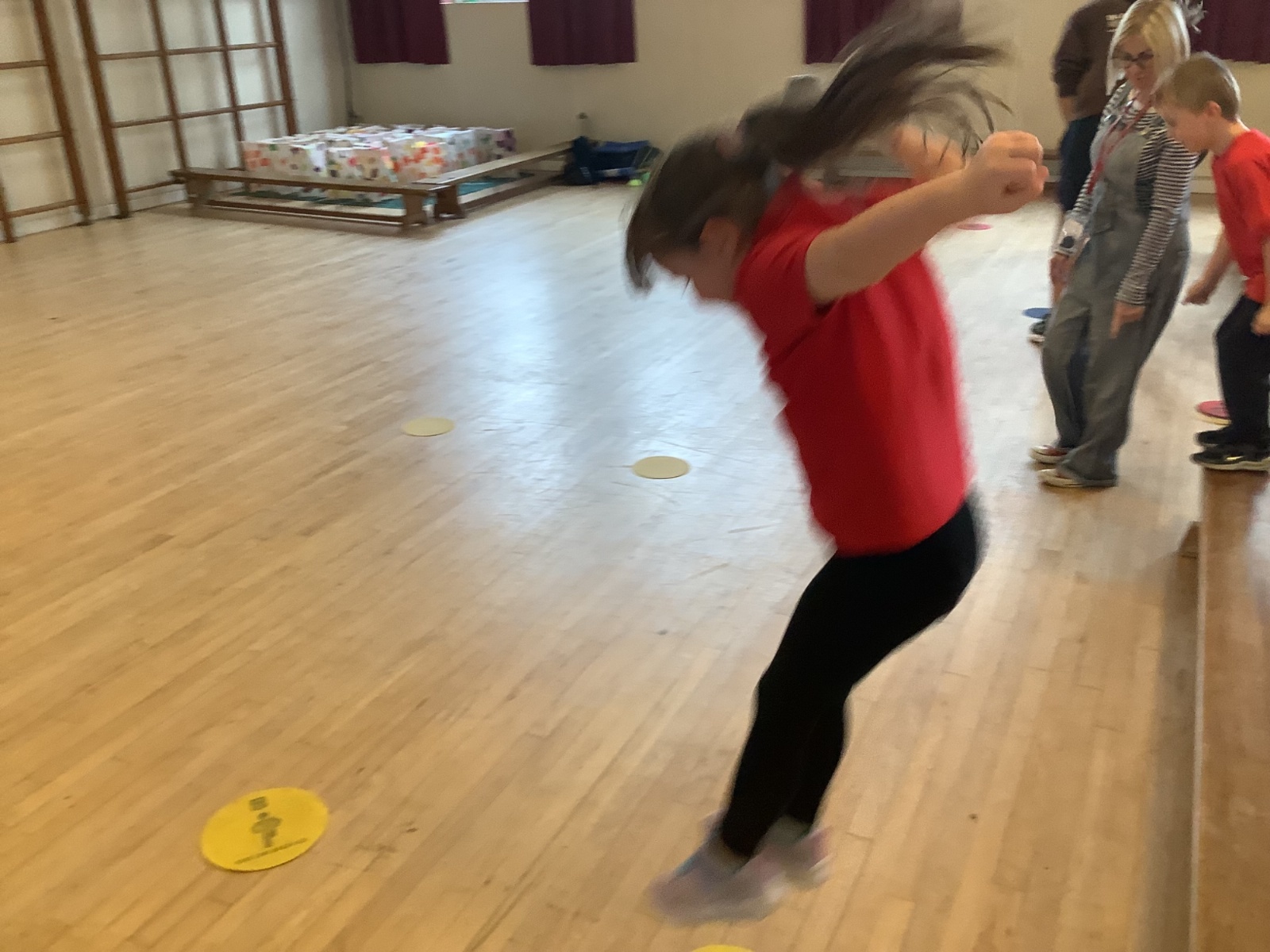 We are learning how to balance, hop, jump and play games.